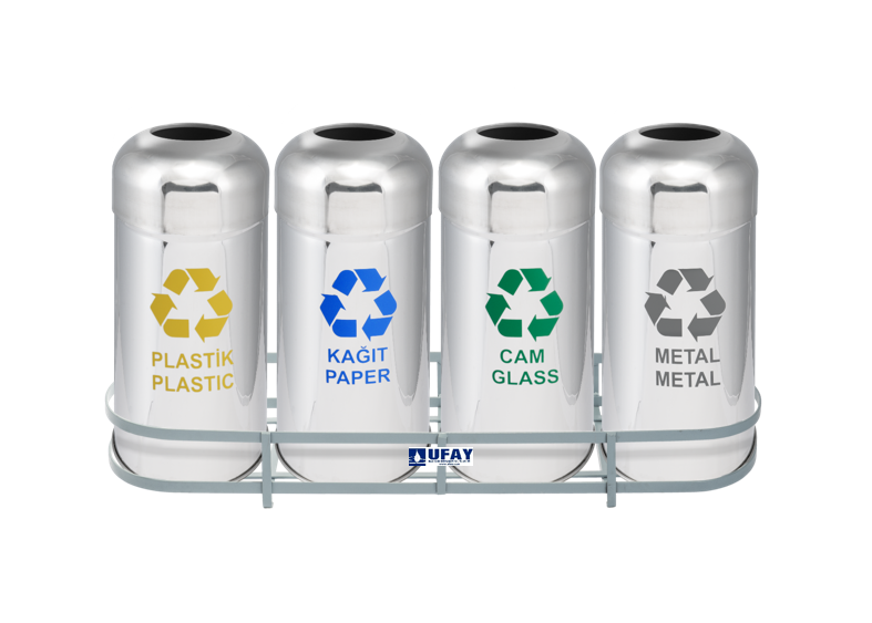 4’Lü Paslanmaz Geri Dönüşüm Seti : Kova Çapı 36 cm Kova Yüksekliği 78 cm Stand Genişliği 148.5 cm Stand Derinliği 39.5 cm 430 Kalite Paslanmaz Çelik.Sıfır Atık Yönetmeliğine Uygun Geri Dönüşüm Atık Kutusu.İstenilen atık türlerine göre sıfır atık yönetmeliğine uygun olarak 2’li 3’lü 4’lü 5’li ve 6’lı olarak üretim yapılmaktadır.