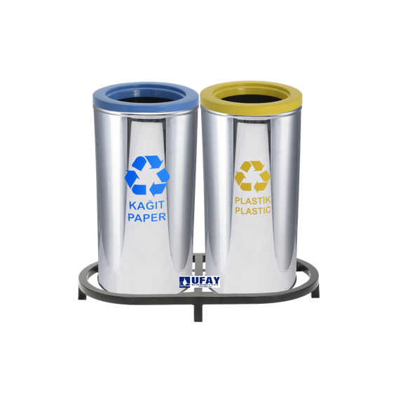 Paslanmaz Geri Dönüşüm Seti: Kova Çapı 30 cm Kova Yüksekliği 60 cm Stand Genişliği 136.5 cm Stand Derinliği 35 cm 430 Kalite Paslanmaz Çelik.Sıfır Atık Yönetmeliğine Uygun Geri Dönüşüm Atık Kutusu.İstenilen atık türlerine göre sıfır atık yönetmeliğine uygun olarak 2’li 3’lü 4’lü 5’li ve 6’lı olarak üretim yapılmaktadır.
